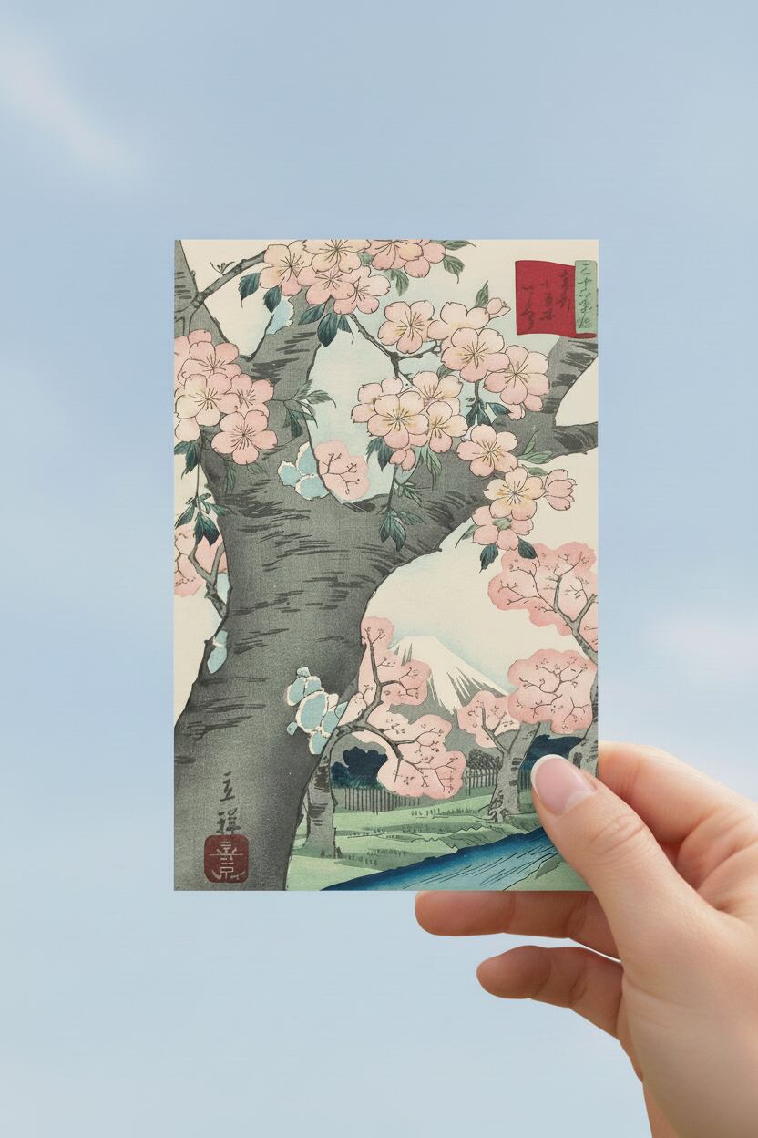 浮世絵ポストカード 作品No.21. 東都小金井さくら カラフル版|歌川広重 二代目