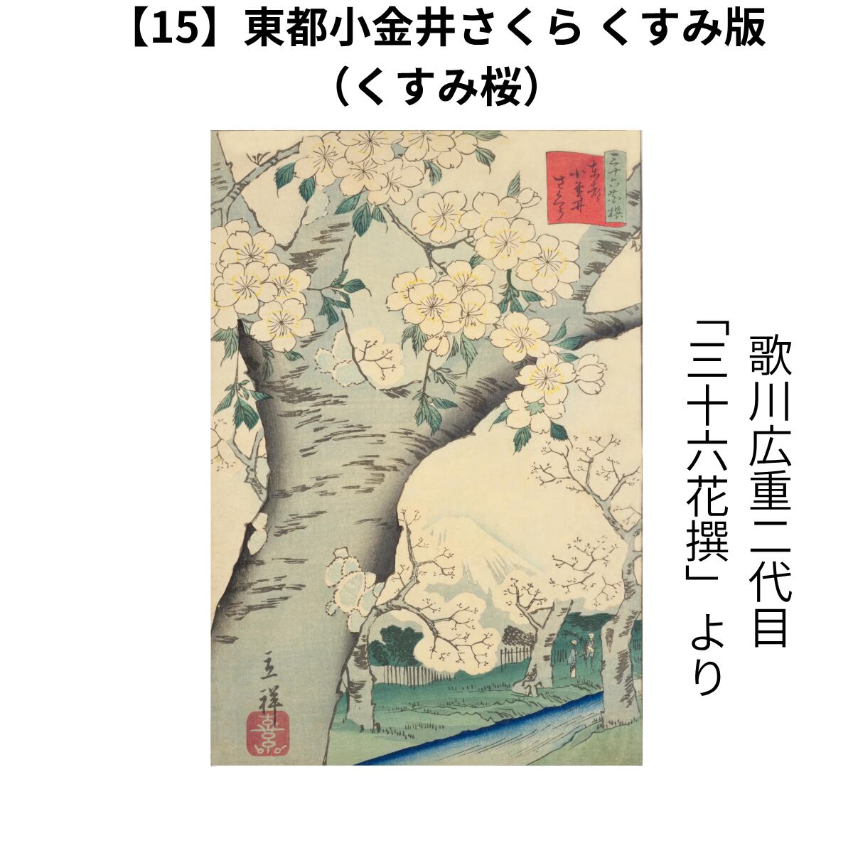 浮世絵ポストカード 作品No.15.「東都小金井さくら 」(くすみ版)歌川広重 二代目